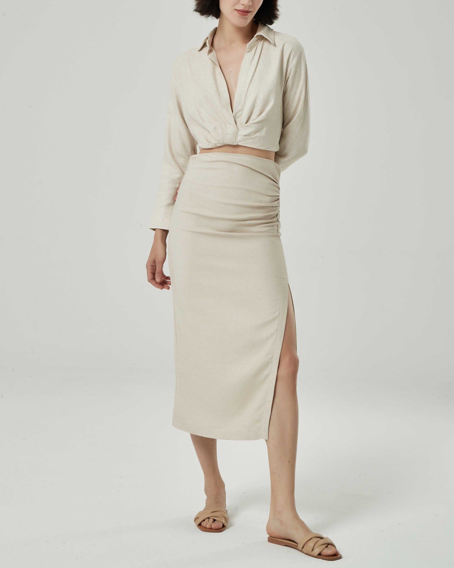 KERRY 2 PIECES SET. Cropped Shirt & Draped Skirt.