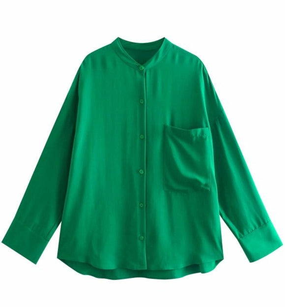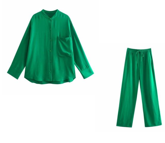 MOROCCO 2 PIECES SET. Elegant shirt in trendy green color, that has an oversized elegant fit & chic pants.